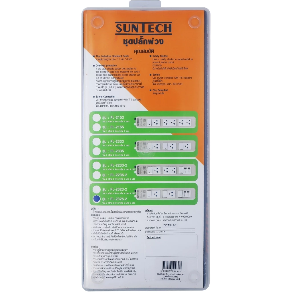 • ชุดปลั๊กพ่วงผ่านการตรวจสอบคุณภาพจากโรงงานแล้ว ได้มาตรฐาน มอก.2432-2555